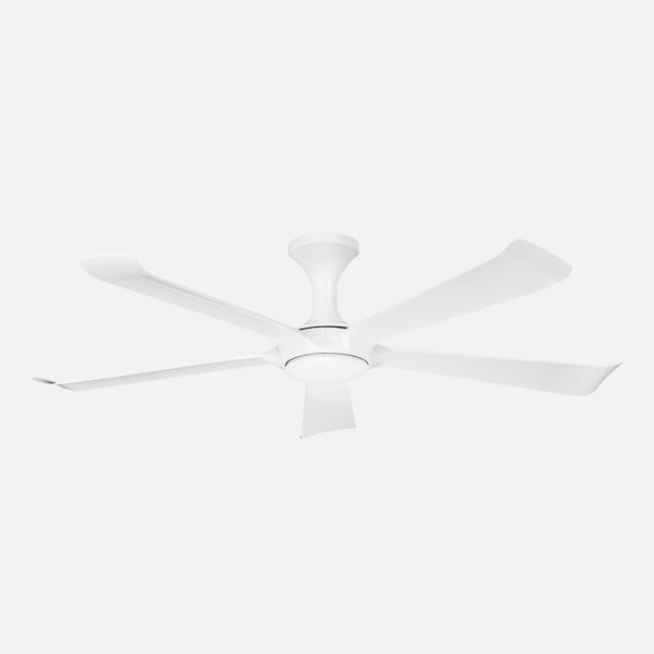 Ventilador DC de la serie VINAROS de color BLANCO con cinco aspas. Realizado en metal, ABS y policarbonato. Diseño elegante y moderno. Motor DC con 6 velocidades. Posee Tecnología LED Integrada con una potencia de 18 vatios, 2250 lúmenes y con COLOR DE LUZ SELECCIONABLE EN 3 TEMPERATURAS (3000-4500-6500K) luz cálida, natural y blanco frío. Tiene unas dimensiones de 30x144x144 centímetros. Contiene MANDO A DISTANCIA, con MEMORIA DE COLOR y TEMPORIZADOR para poder programar su apagado transcurridas 1, 2, 4 u 8 horas. Modelo disponible en color blanco y negro.
