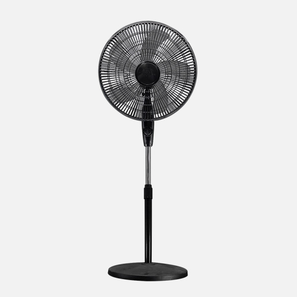 Ventilador de Pie de la serie ESCUDERO en color NEGRO con cinco aspas y tres velocidades. Realizado en metal y policarbonato. De diseño muy moderno y elegante, pudiendo tomar parte de la decoración. Tiene 50 vatios de potencia. Con dos posiciones fijo y rotatorio, también orientable, pudiendo difundir el aire rápidamente por toda la estancia o enfocado a la zona que desee ventilar. Tiene una medida, regulable en altura, de 100<,115x40x40 centímetros. Modelo disponible en color negro y en color blanco.